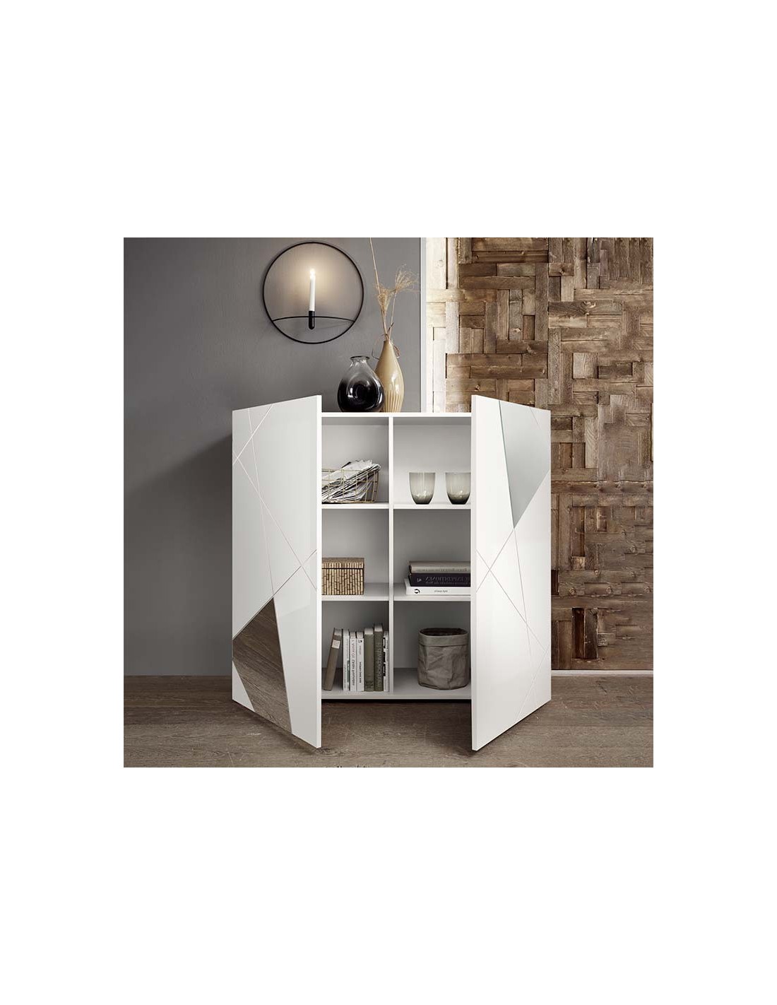 Madia 2 ante serigrafate con specchi Bianco laccato