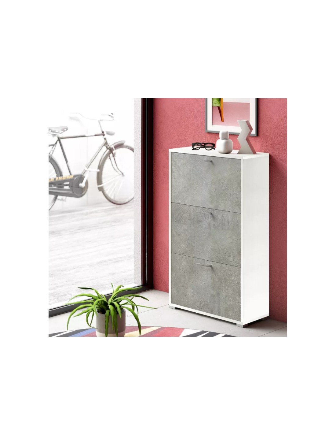 Scarpiera 3 ribalte Doppia profondità / Doppia capienza Bianco / Cemento