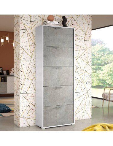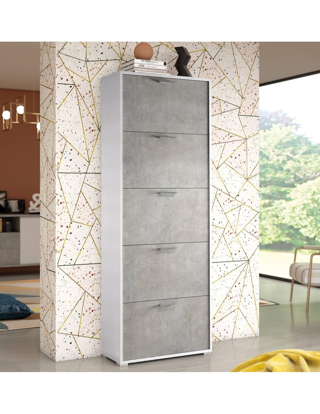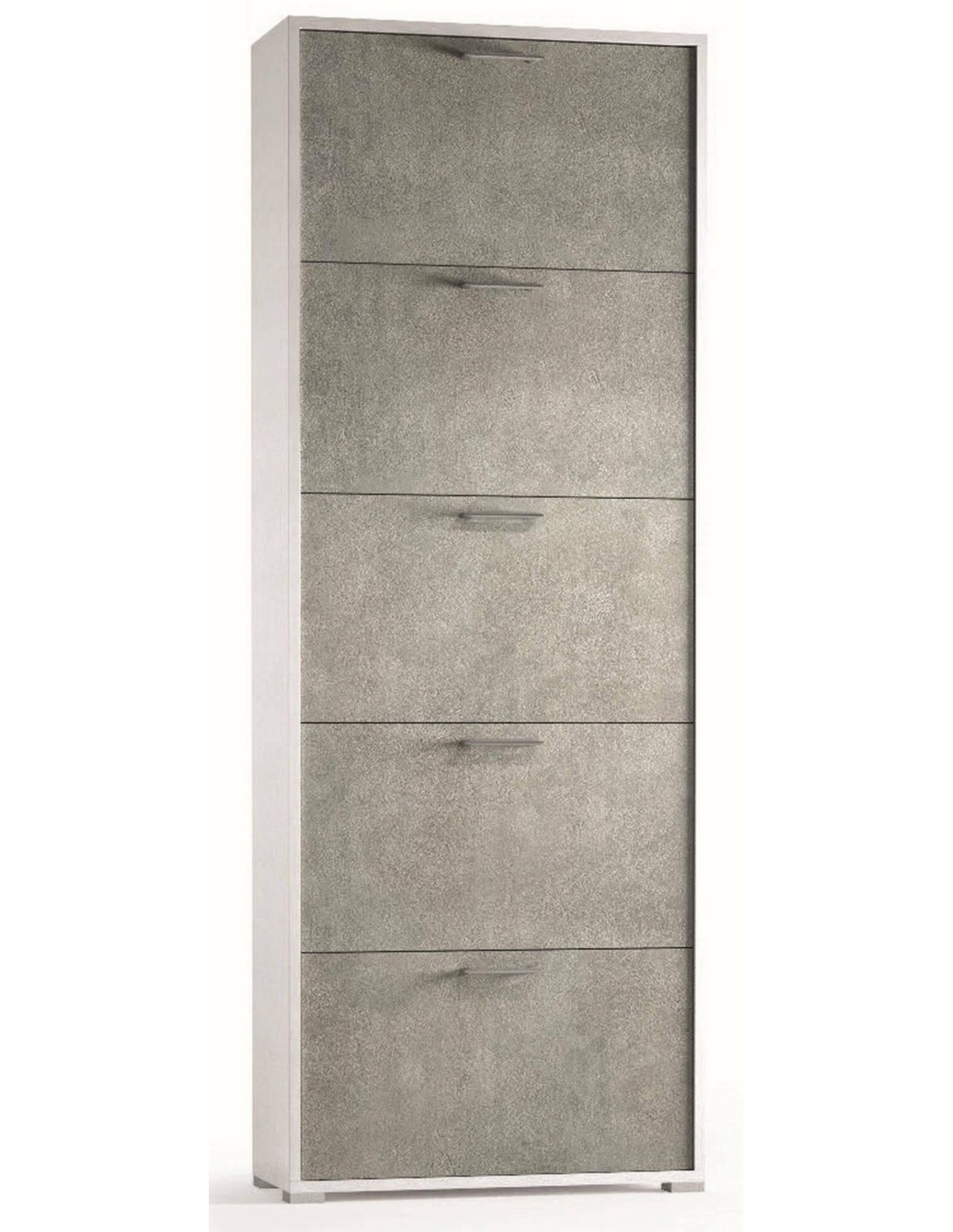 Scarpiera 5 ribalte doppia capienza / doppia profondità Bianco venato / Cemento