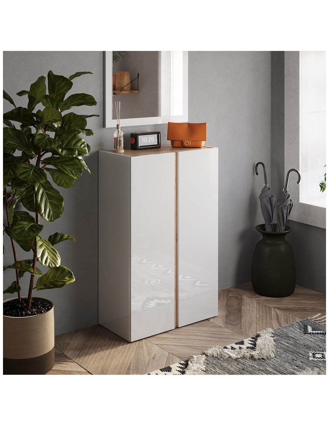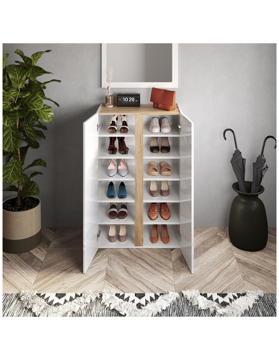 Madia / scarpiera ingresso 4 ante 10 ripiani interni Bianco laccato / Rovere kadiz