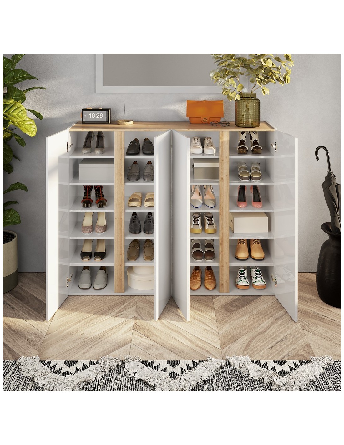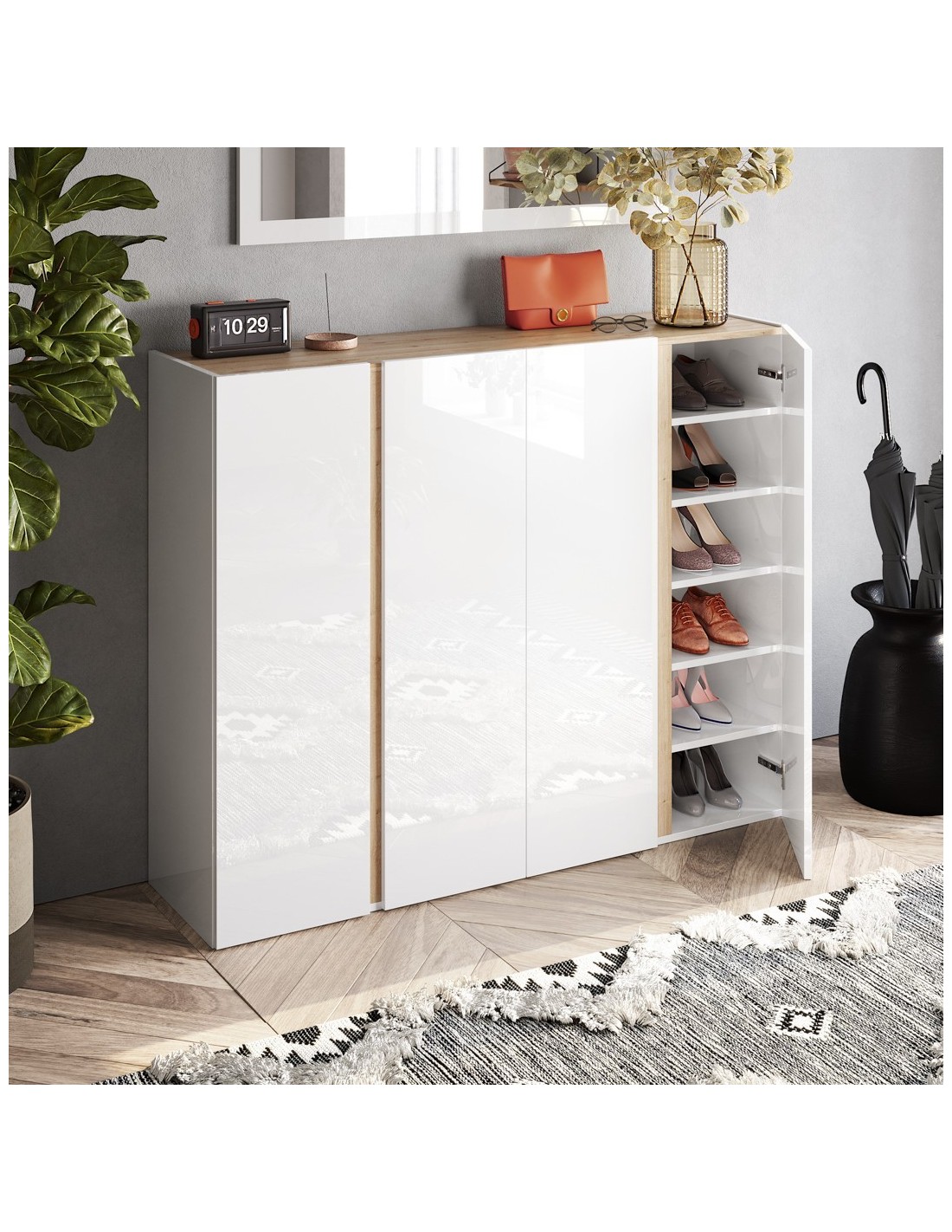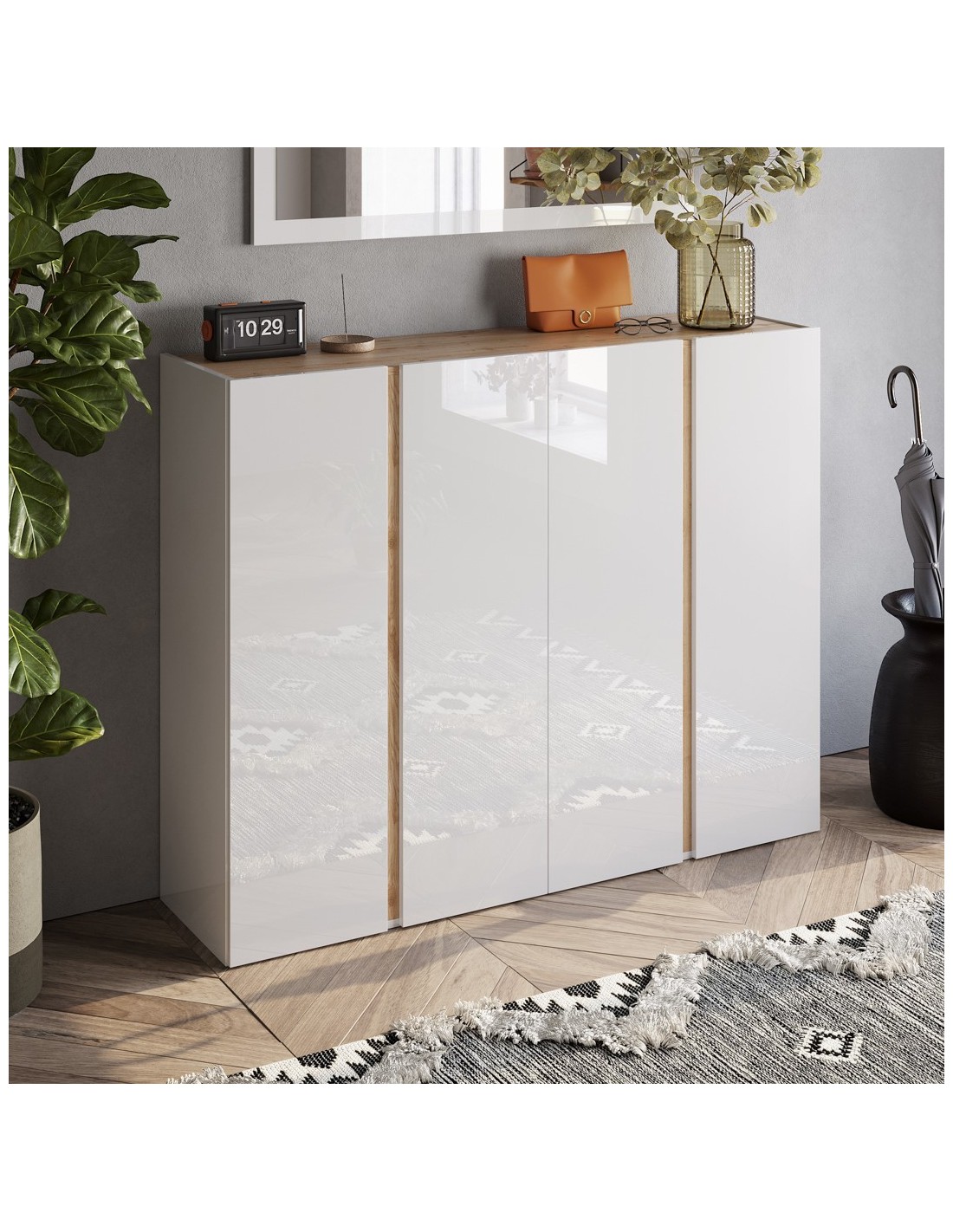 Armadio ingresso scarpiera con anta a specchio Bianco laccato/Rovere kadiz (pannello...
