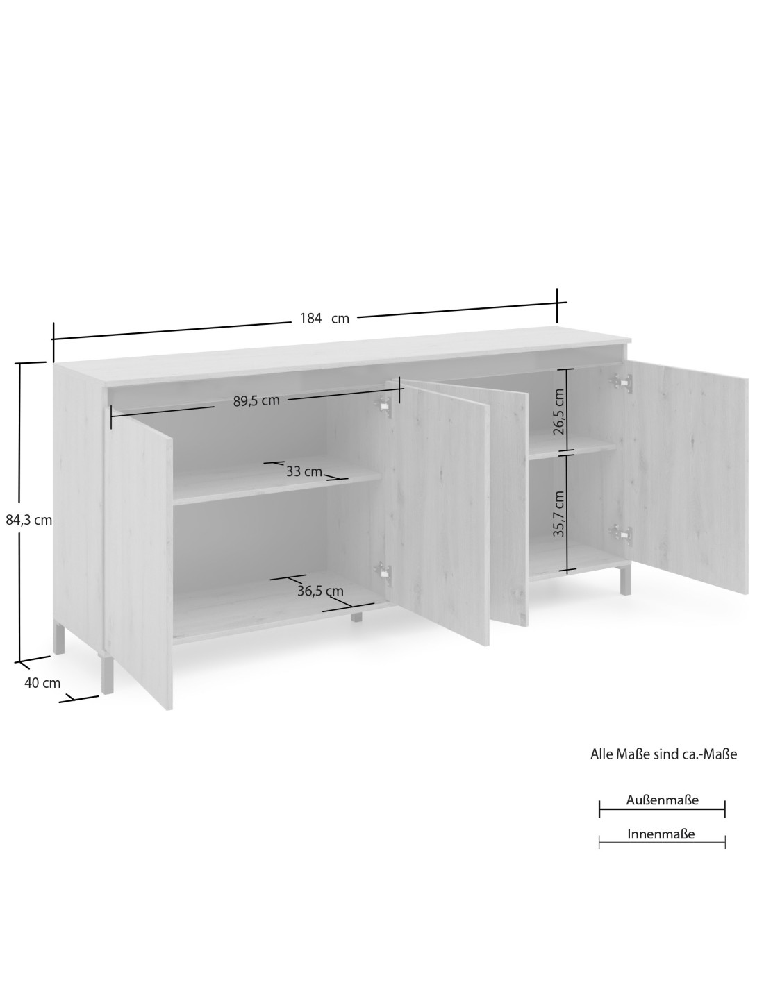 Dimensioni cm: L 184 x P 40 x H 84,3