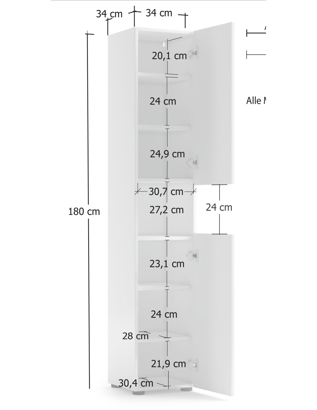 Colonna bagno 2 ante - 1 vano Bianco laccato lucido