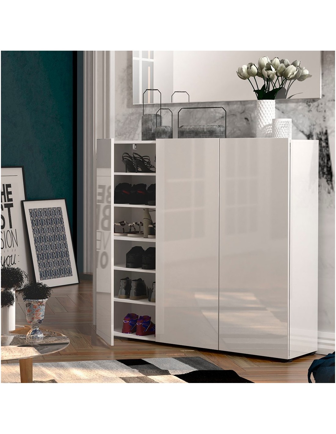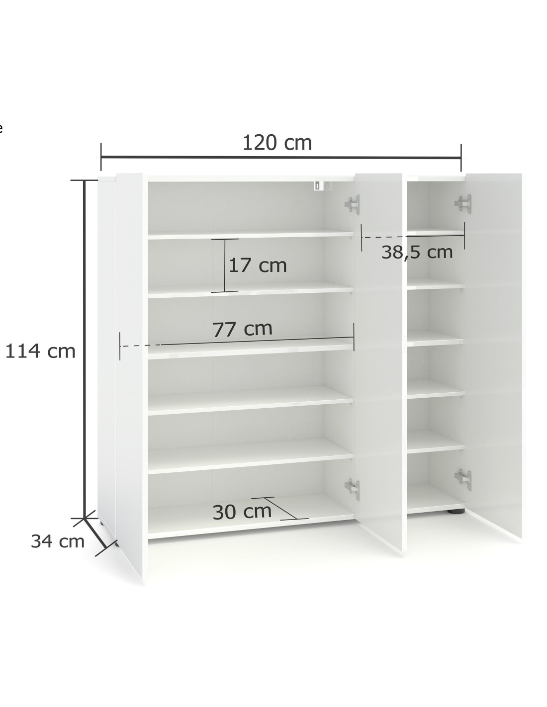 Scarpiera 3 ante 5 + 5 ripiani Bianco laccato lucido