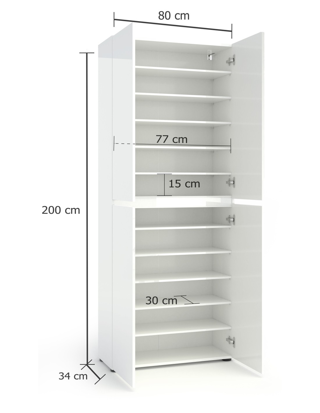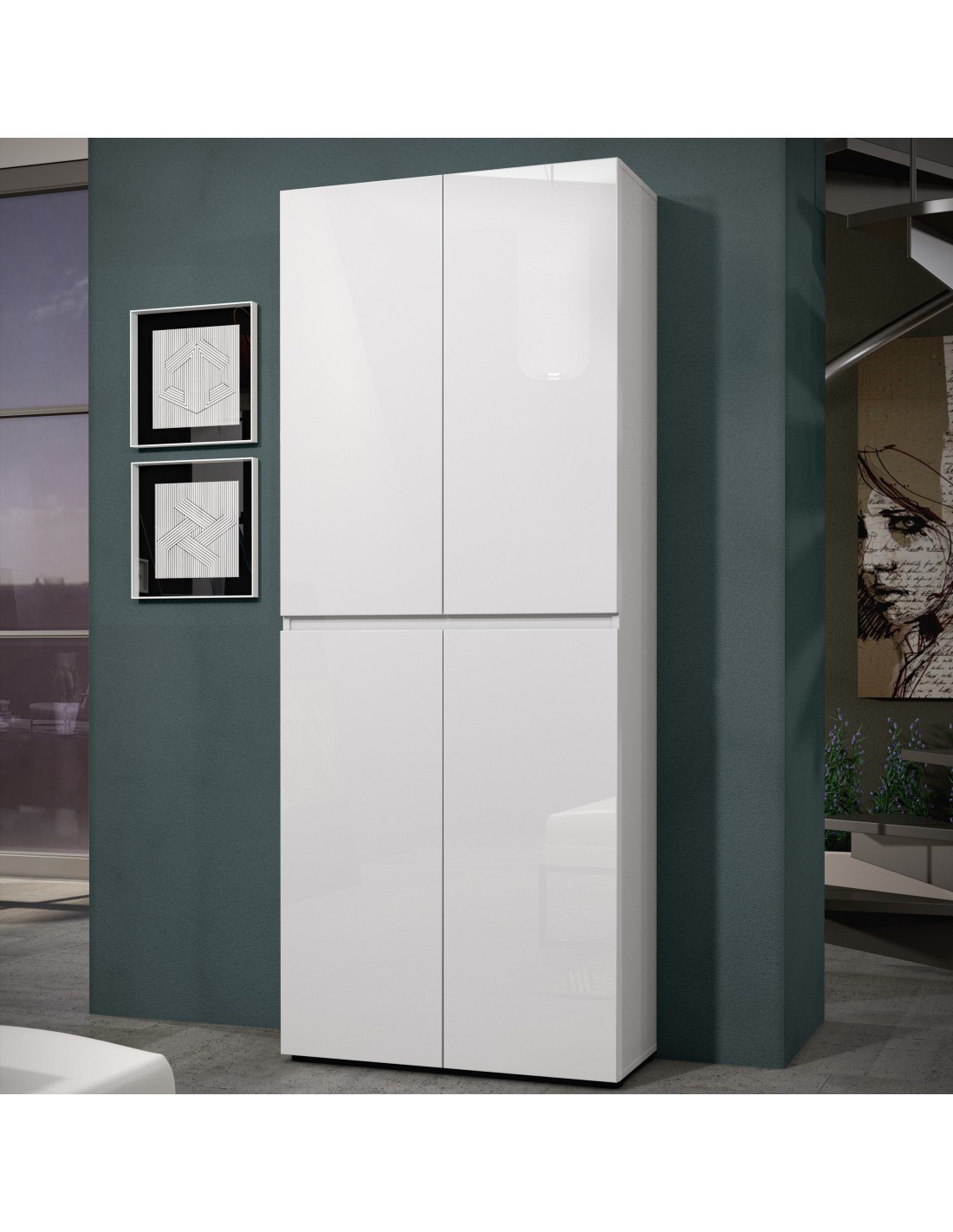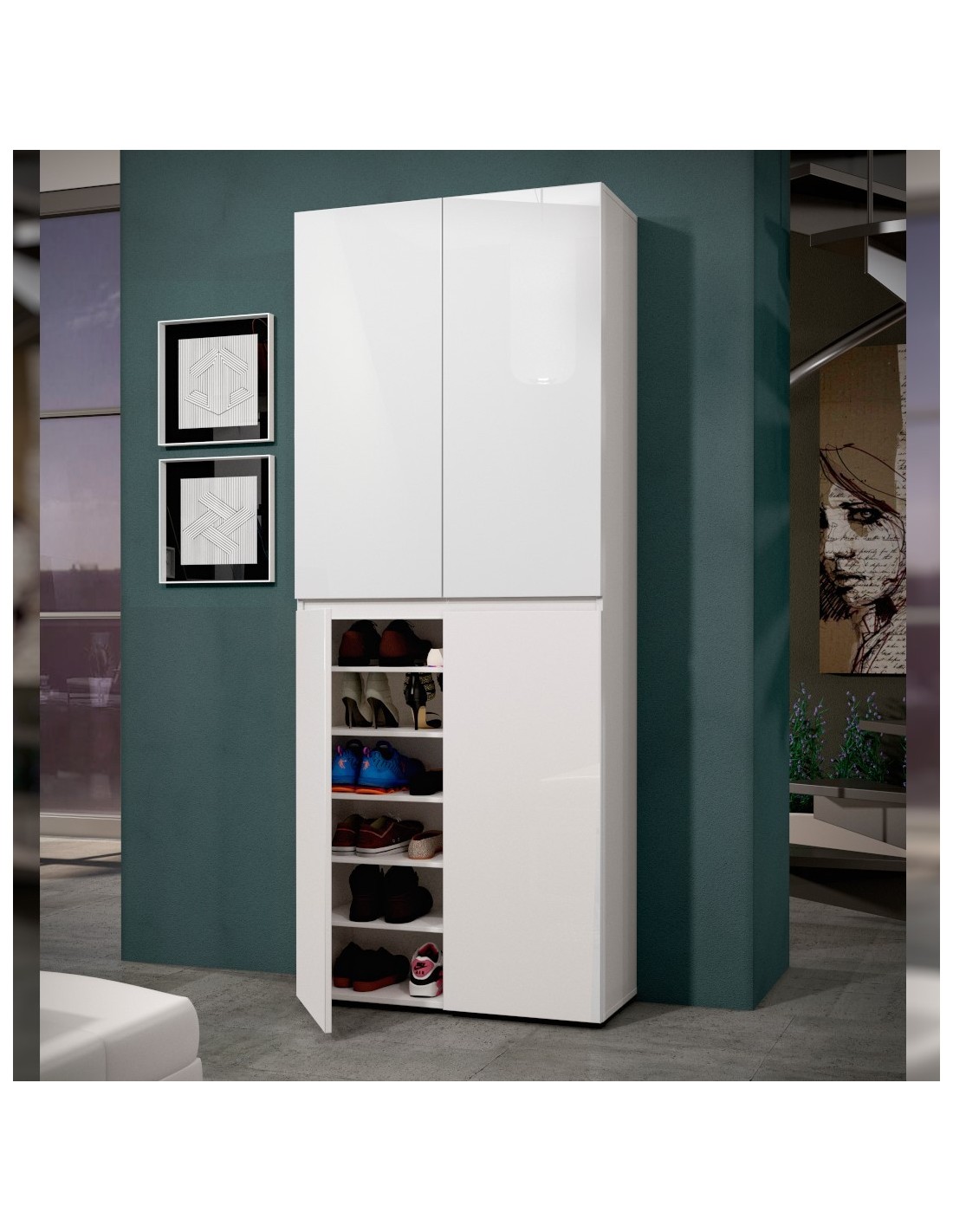 Armadio multiuso/scarpiera 4 ante 10 ripiani Bianco laccato lucido