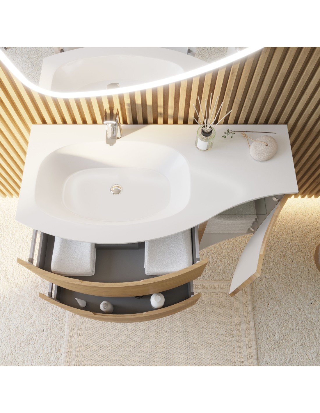 Lavabo in resina asimmetrico DX dimensioni cm : L 105 x H 13.2 x P 50.5