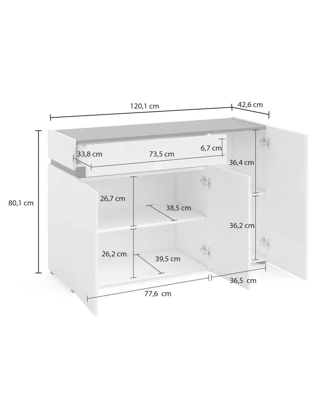 Dimensioni cm: L 120 x P 42 x H 80