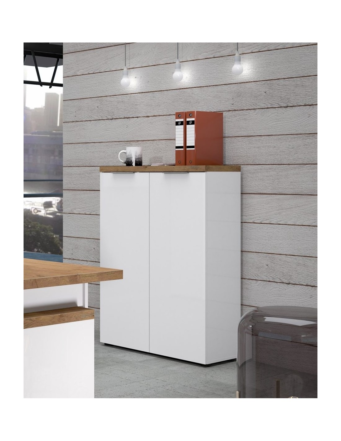 Questo mobile per ufficio ha una struttura stabile e solida con un'ampia capacità contenitiva.