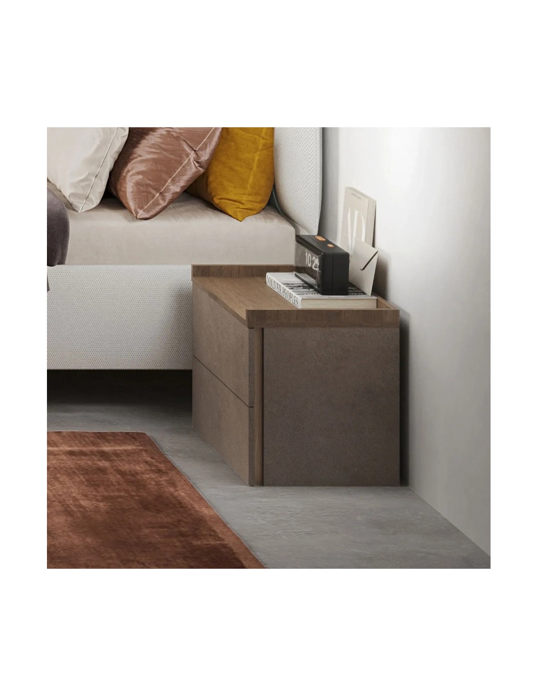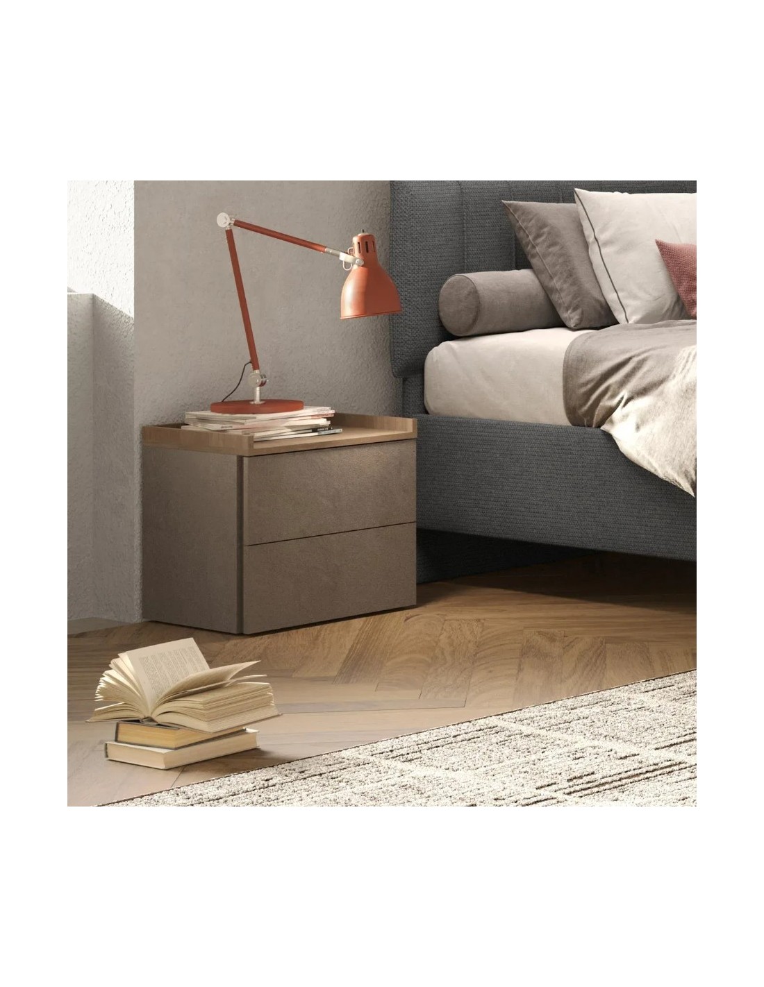 Comodino 2 cassetti con top a vassoio Bronzo/Mercure